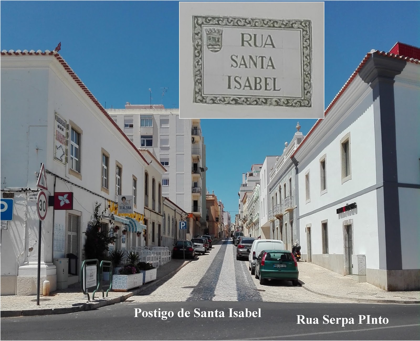 ... e mais ou menos nas traseiras desta rua, Rua Machado Santos, corria a cerca em direcção à Igreja Matriz de Nossa Senhora da Conceição passando em frente ao adro onde se erguia o primitivo pelourinho de Portimão e, para facilitar o acesso à Igreja, foi aberto um postigo que permitia a passagem das pessoas